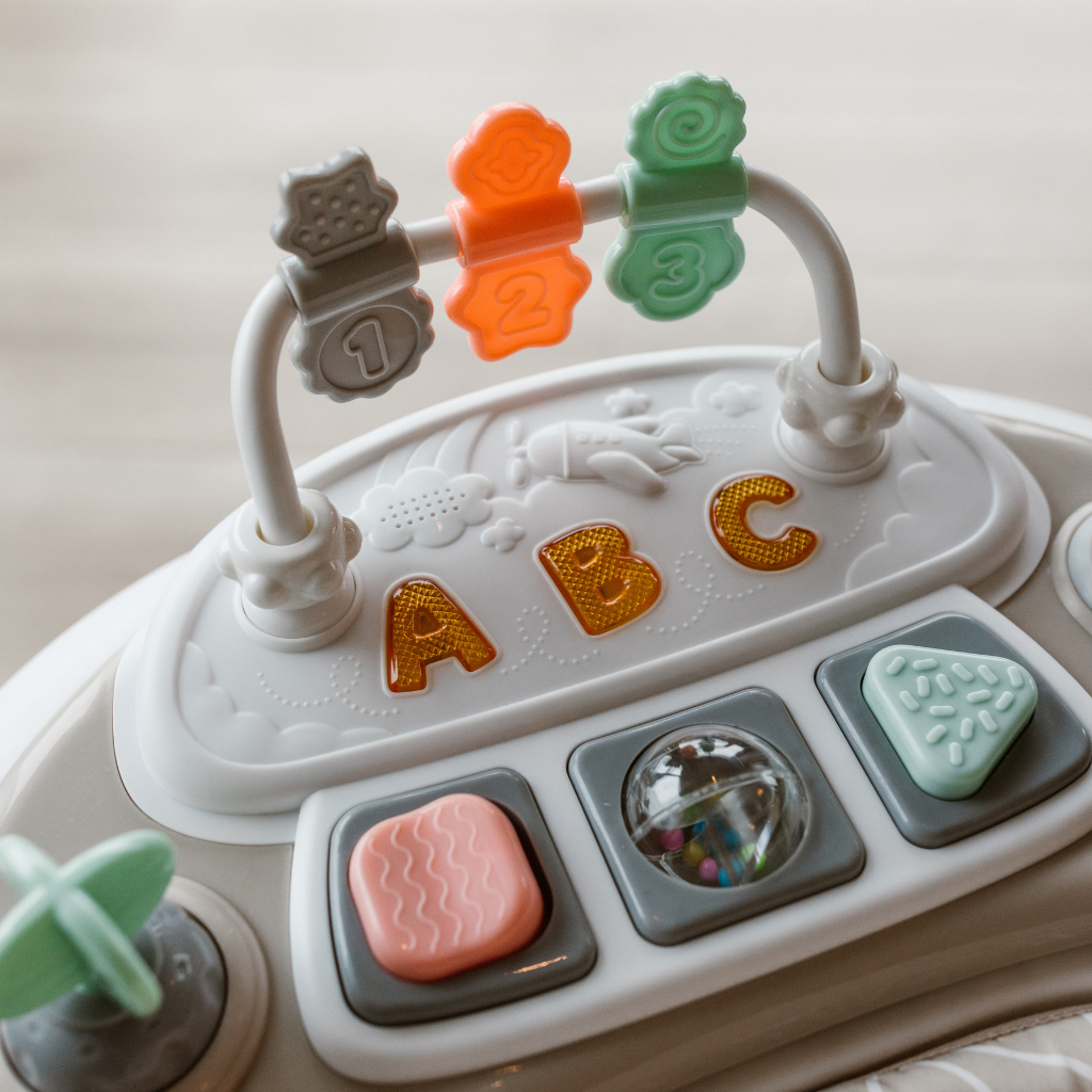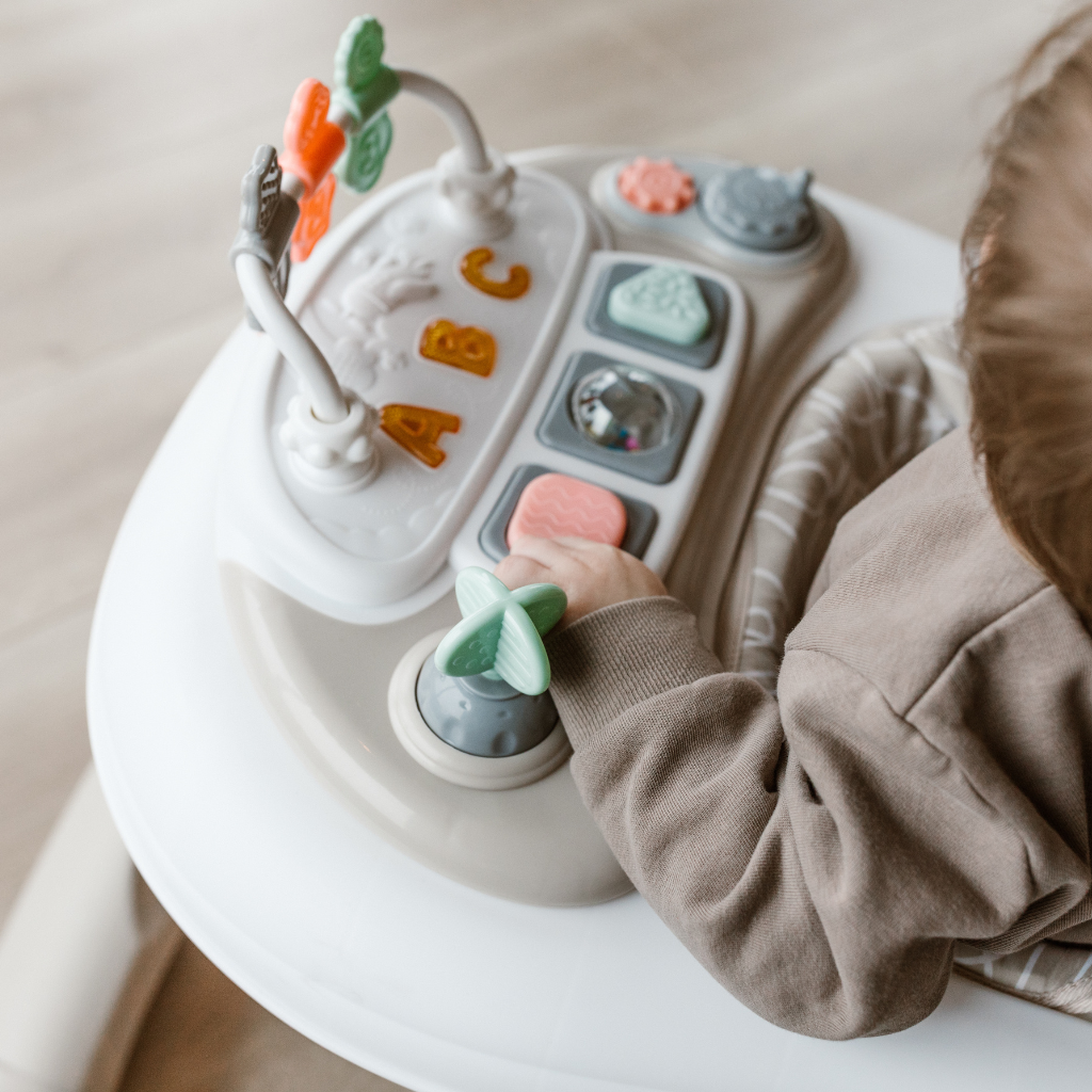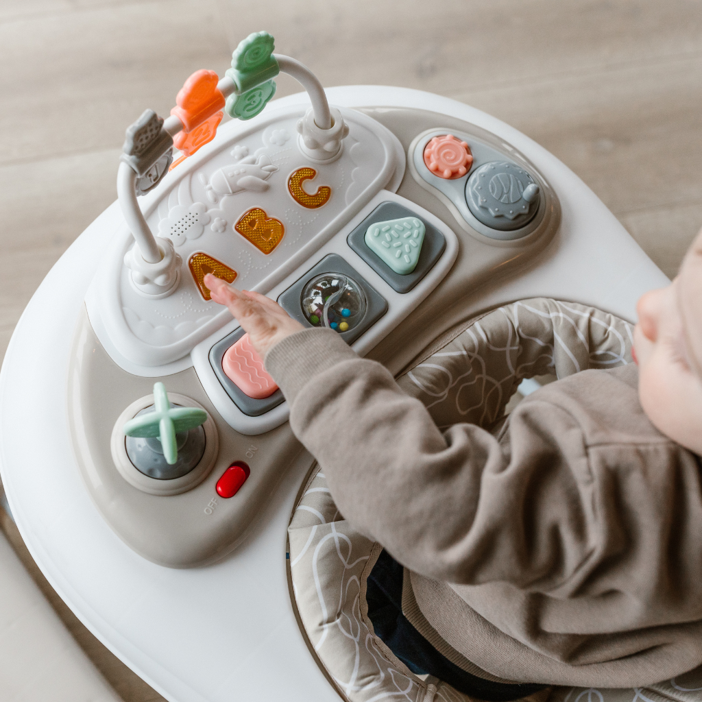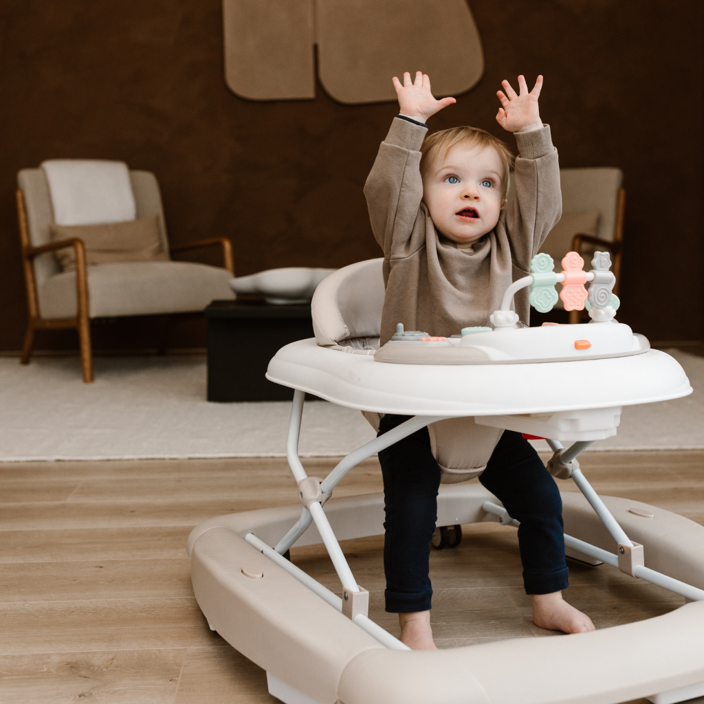- Met handvat achteraan: je kindje kan ook achter het loopstoeltje lopen en het handvat vasthouden.