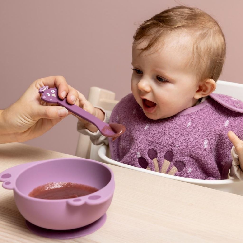 Découvrez le bavoir Trixie doux et absorbant, dans un violet joyeux, parfait pour les repas. 100 % coton, ajustable pour suivre la croissance.