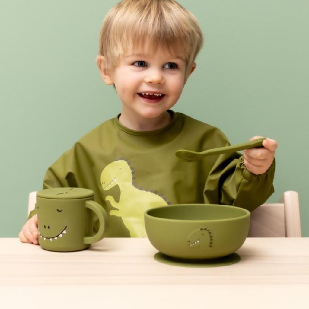Avec base ventousée.- Avec ventouse : permet de rester bien en place pendant toute la durée du repas.- Bol souple 100 % en silicone alimentaire : incassable.