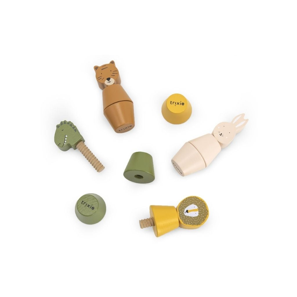 En bois FSC®.- Dès 18 mois.- Contient 4 animaux à vis : toutes les associations sont permises !- Certifié en bois 100 % FCS®.- Peintures à l'eau sans danger pour votre petit.