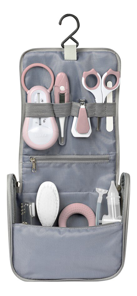 Bevat 9 essentiële verzorgingsaccessoires. - Inclusief 9 accessoires: nagelknipper, nagelvijl, schaar, haarborstel, bijtring, vingertandenborstel, badthermometer, digitale thermometer en handmatige neusreiniger.