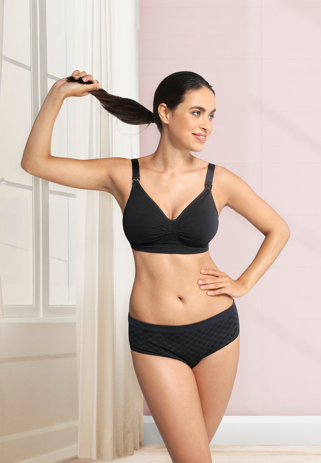 De voedingsbeha is gemaakt zonder naden of beugel, waardoor hij extra comfortabel zit. Ondersteuning krijg je dankzij de brede band onderaan: die ondersteunt en lift de borst. De beha wordt geleverd met een losse extender, zodat je de sluiting kan aanpassen met extra haakjes. Zo kan je de beha ook al dragen tijdens je zwangerschap! De naadloze borstvoedingsbeha is comfortabel, soepel en wordt dan ook aanbevolen door verlos- en lactatiekundigen.