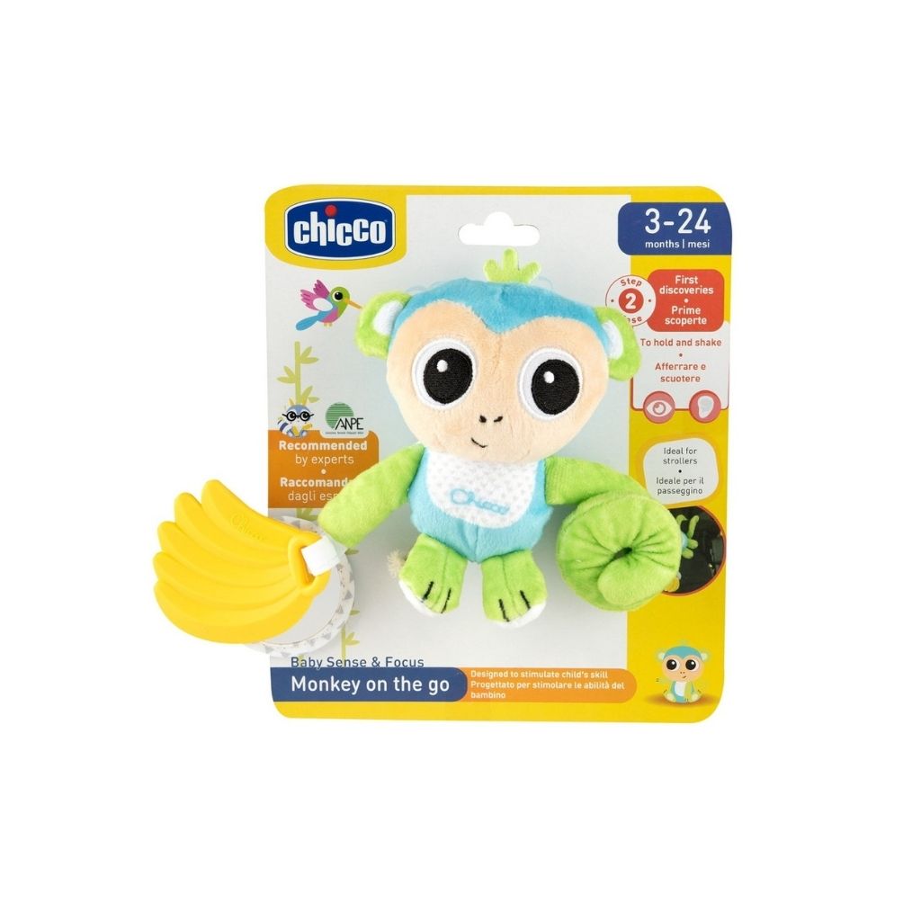 Van 3 tot 24 maanden.- Bananen waarop je kan bijten: ideaal om de pijn in je tandvlees te verzachten.- Elastische armpjes die zichzelf weer oprollen & die je gemakkelijk aan je wandelwagen of je autostoel kan hangen: zo kan je je kleintje bezig houden, waar je ook naartoe gaat!