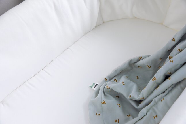 Gebruik met of zonder schommelpoten. - Wiegje inclusief bijhorend matrasje met hoes, bekleding en schommelpoten.