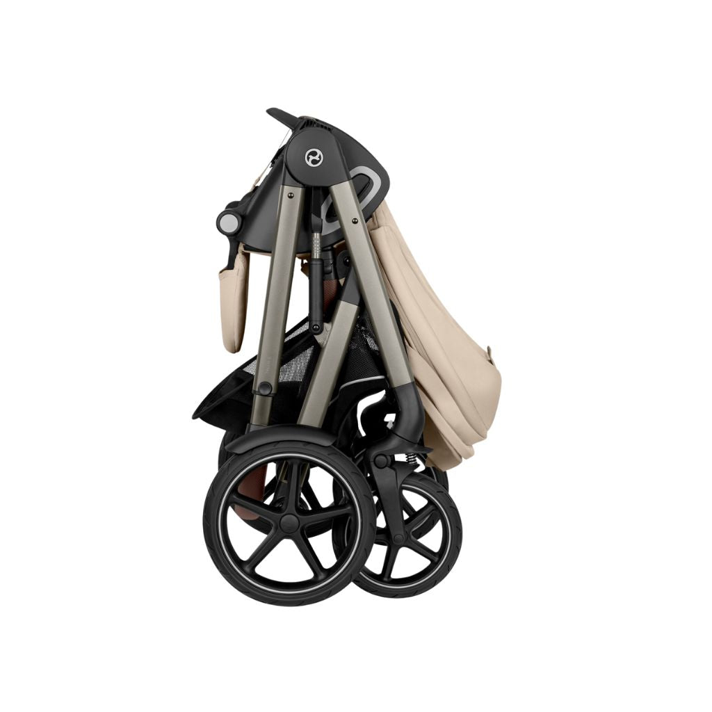 Ontdek de Cybex Talos S Lux kinderwagen in Almond Beige: perfect voor stad én natuur met all-terrain wielen en 360° weersbescherming.