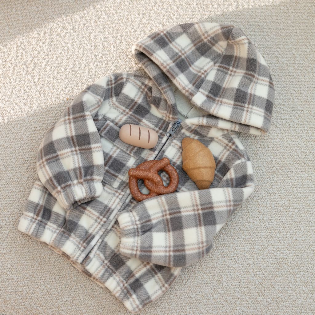 - Geruite jas met capuchon.