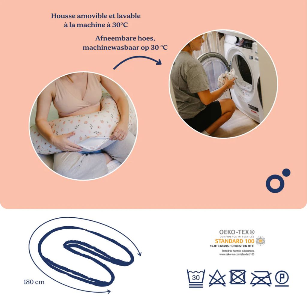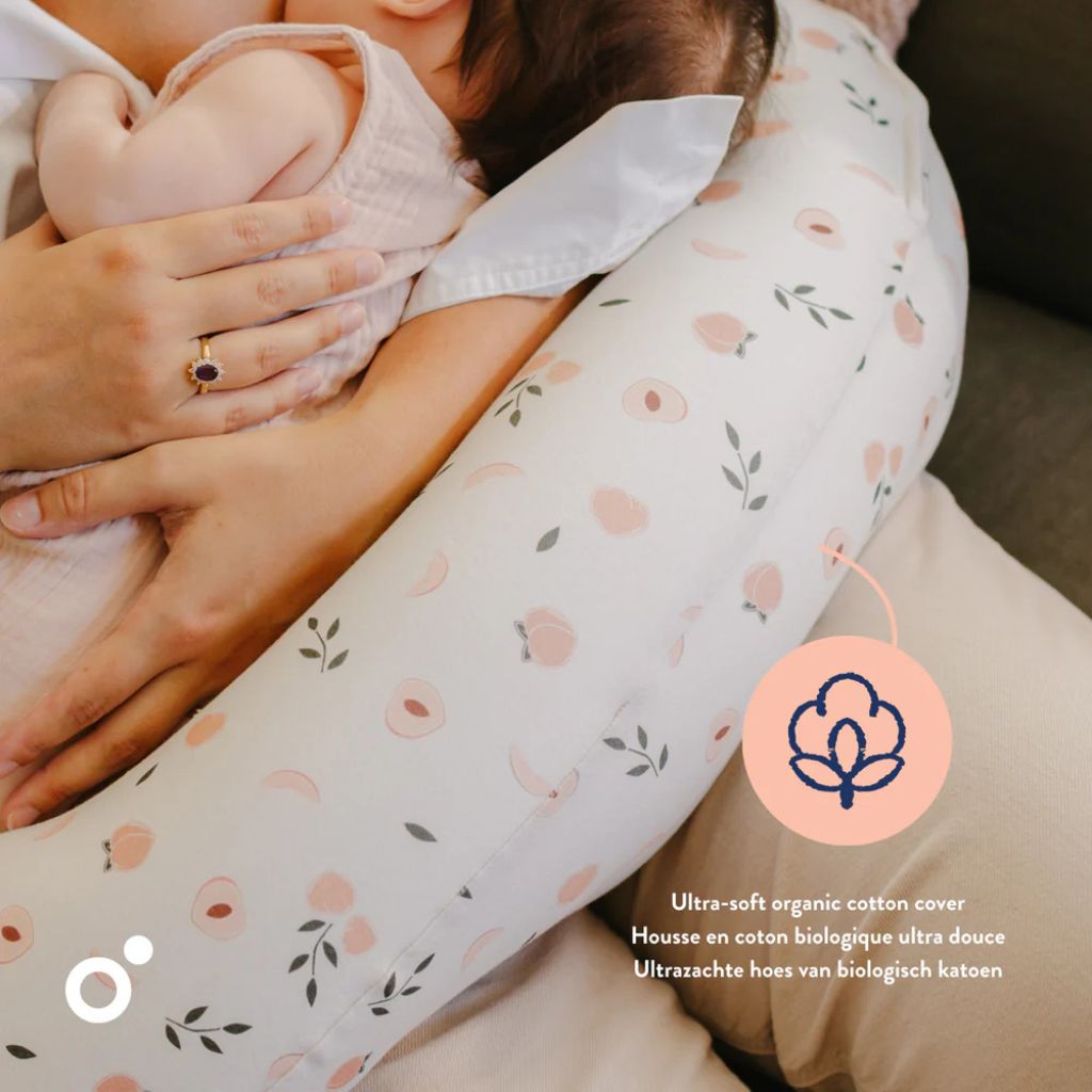 Vernieuw je doomoo Buddy kussen met de Peaches hoes: biokatoen, wasbaar & perfecte pasvorm. Comfort in veelkleurig design voor mama & baby.