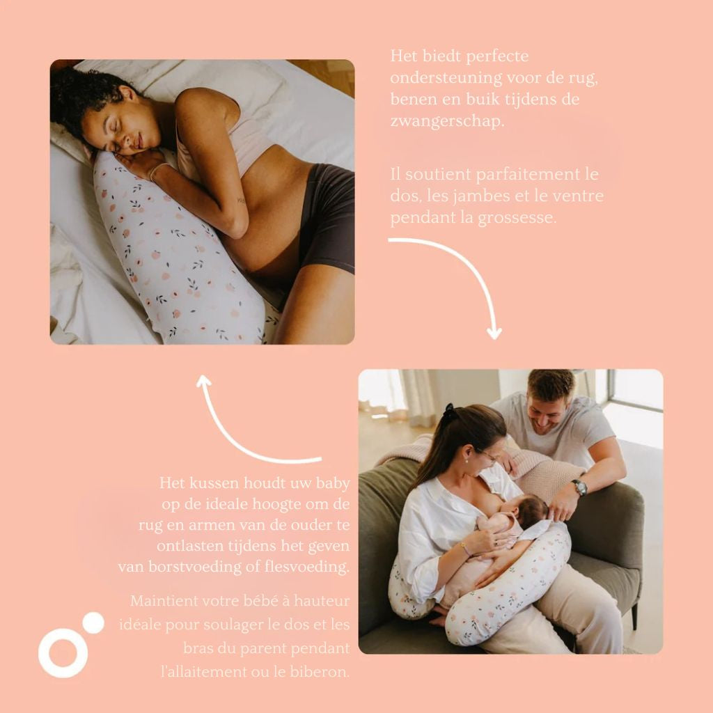 Na de geboorte transformeert dit veelzijdige kussen in een essentieel hulpmiddel voor borstvoeding of flesvoeding. Het houdt je baby op de juiste hoogte, waardoor je armen worden ontlast en een ontspannen houding tijdens het voeden wordt bevorderd. De zachte en ademende hoes van biologisch katoen is niet alleen comfortabel voor jou en je baby, maar ook veilig, dankzij de Oeko-Tex® certificering.