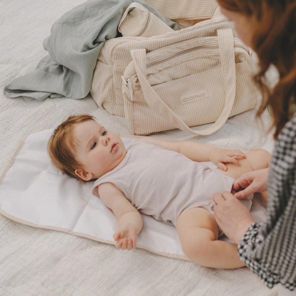De beige Fluffy-luiertas van doomoo is ontworpen om je leven vanaf de eerste dag gemakkelijker te maken.