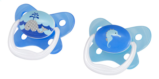 De orthodontische fopspeen van silicone is geschikt vanaf de geboorte tot 6 maanden.