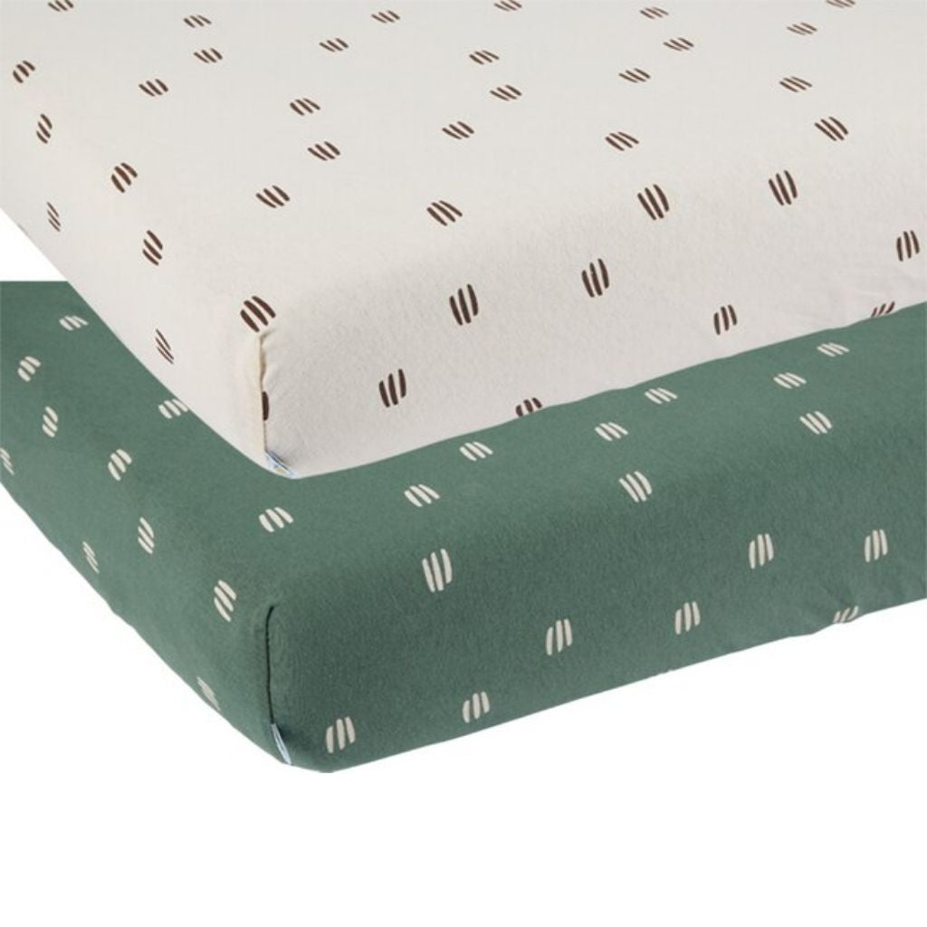 Dreambee Hoeslaken voor wieg Flo groen/ecru katoen - 2 stuks