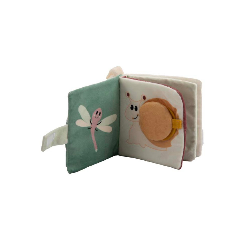 Stimuleert de zintuigen. - Met een spiegeltje, vrolijke figuurtjes uit de vijver, raampjes die je open en dicht kan doen, heel wat texturen die je kan ontdekken...