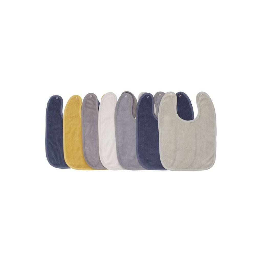 Dreambee Slabbetje Essentials met drukknoppen blauw/grijs/oker - 7 stuks