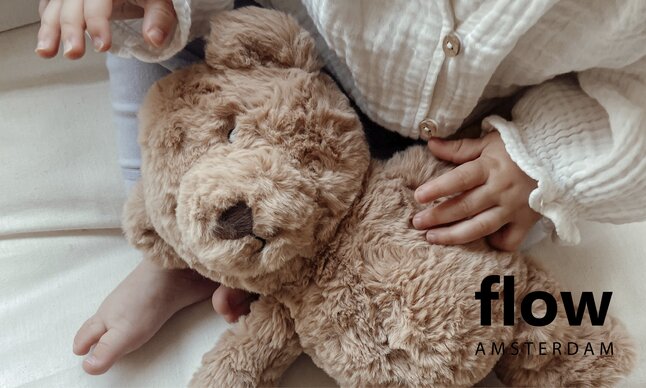 Flow Activiteitenknuffel / Hartslagknuffel Lou de Beer beige 29 cm