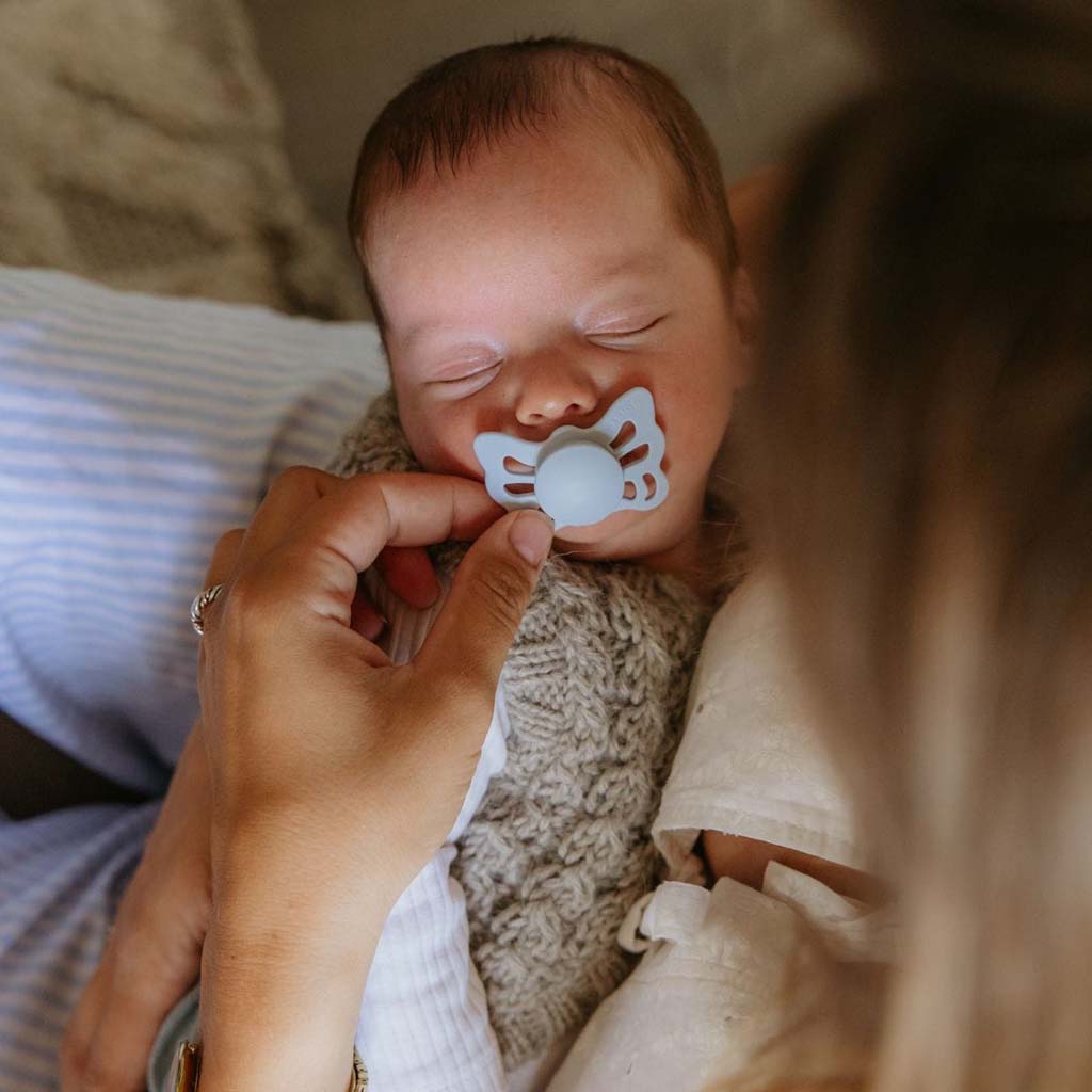 FRIGG Fopspeen 0 - 6 maanden Baby’s First pacifier - Moonlight Sailing Powder Blue - 4 stuks