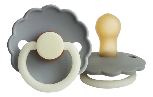 FRIGG Fopspeen 0 - 6 maanden Daisy Night latex French Gray/Portobello - 2 stuks