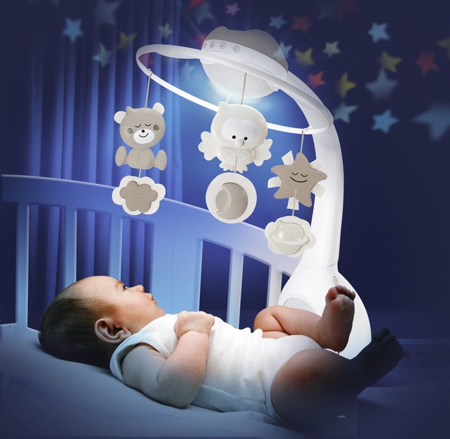 De mobiel Watch Over Me groeit mee met je kleintje. In de eerste fase gebruik je de mobiel en laat je de uil, de ster en de beer dansen boven het hoofdje van je baby. De wiegeliedjes, natuurgeluiden en de geprojecteerde sterren op het plafond brengen je kleintje snel en zachtjes naar dromenland. Je kan de mobiel makkelijk bevestigen aan je baby's park of bedje. Hij een timerfunctie van 20 minuten, 10 slaapliedjes en natuurgeluiden.