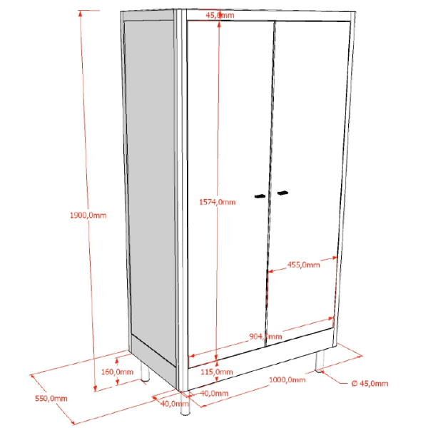 - B 100 x H 190 x D 55 cm.