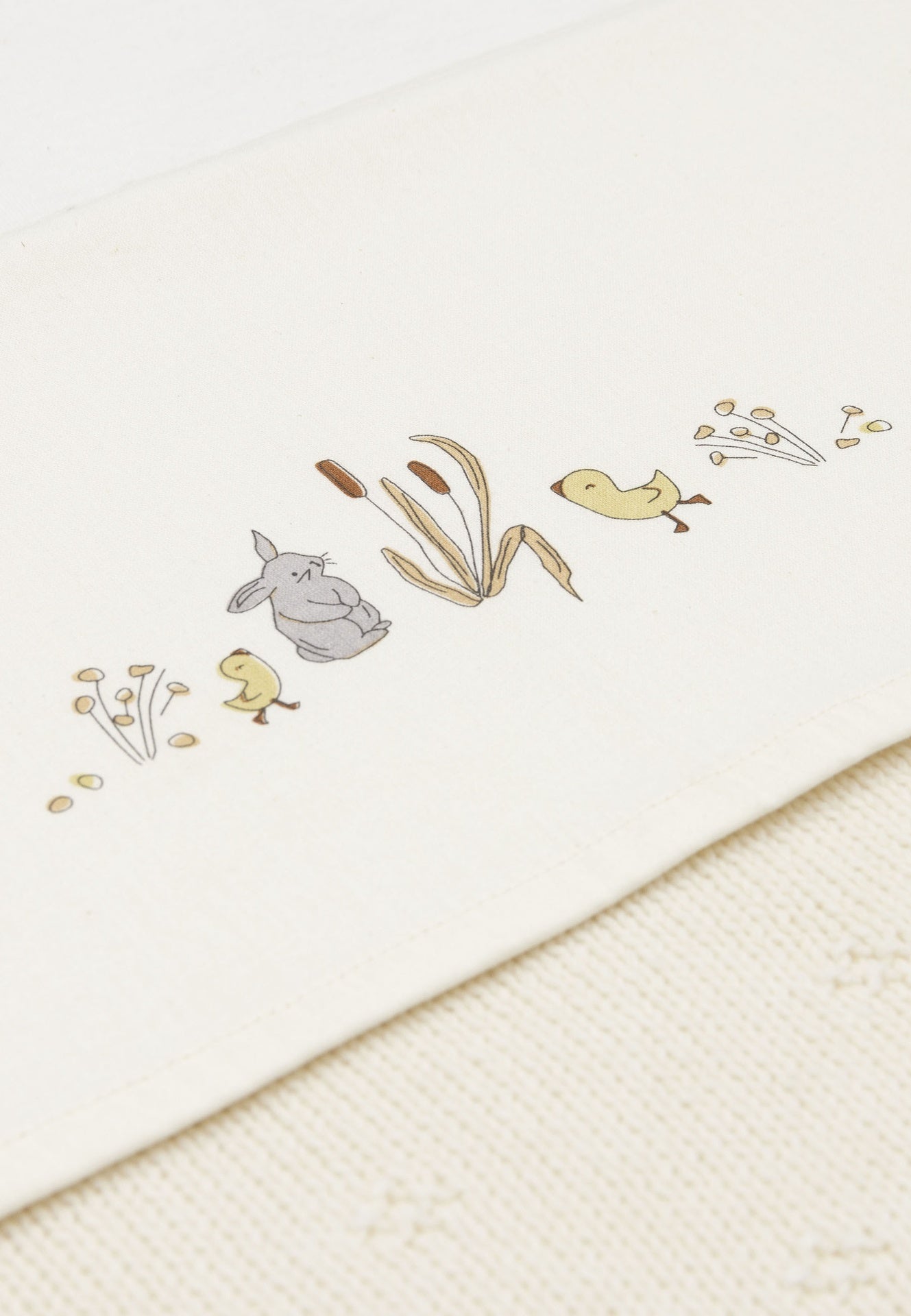 - Perfect te combineren met de Knit collectie van Jollein.- Subtiel motiefje & neutrale kleuren: met een konijntje, eendjes en waterplanten.- B 100 x L 75 cm.- Gemaakt van Oeko-Tex gecertificeerd katoen.- Te wassen op 40 °C.