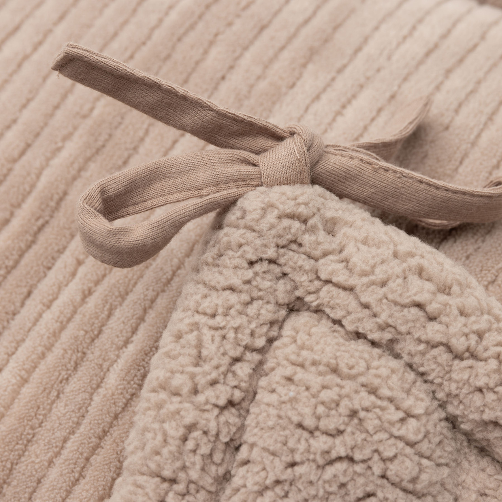 - De ene kant is van zeer zacht teddy en de andere kant is geribbeld.