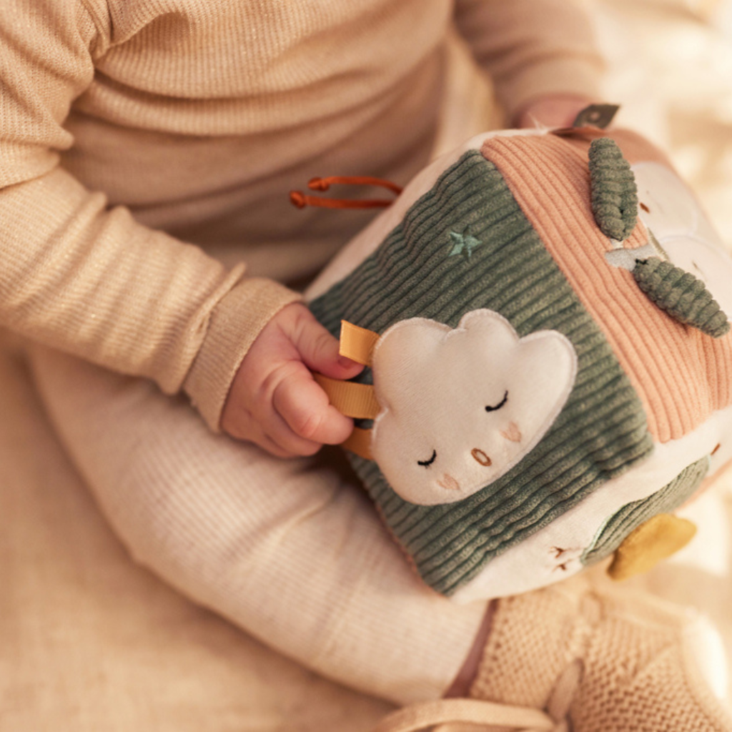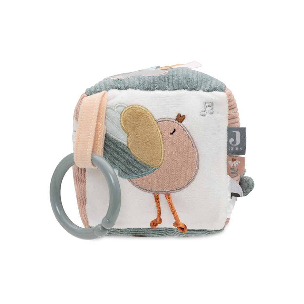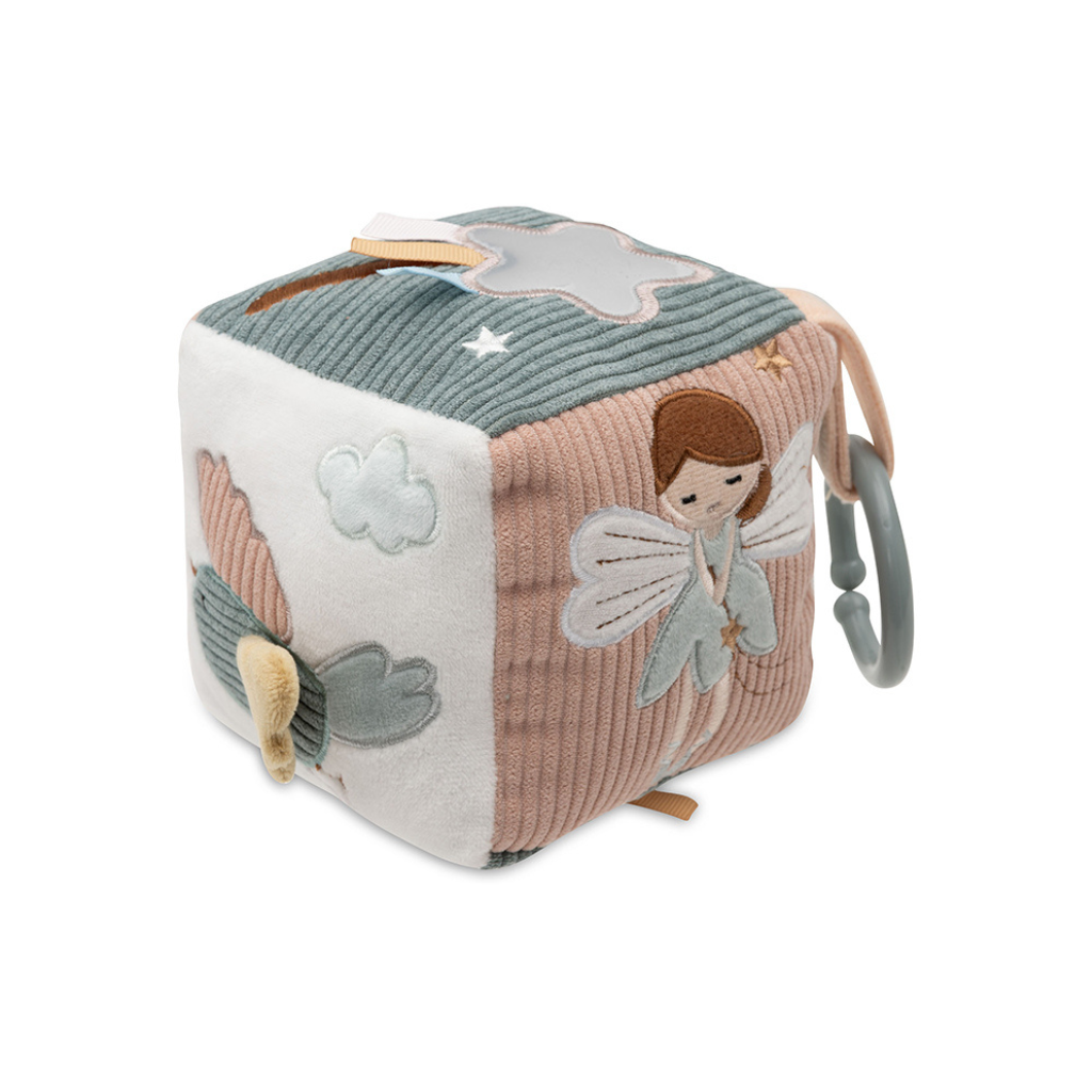 - Met een bevestigingsring: zo kan je de kubus gemakkelijk aan je wandelwagen, autostoel... bevestigen.