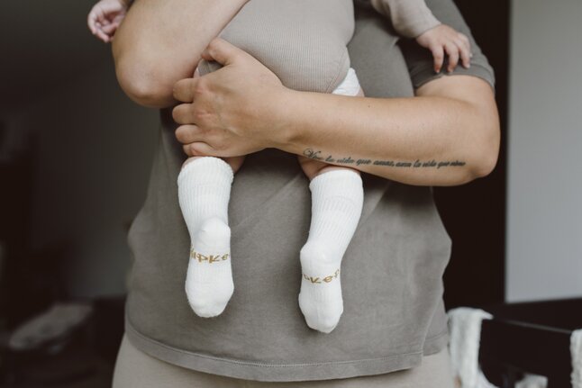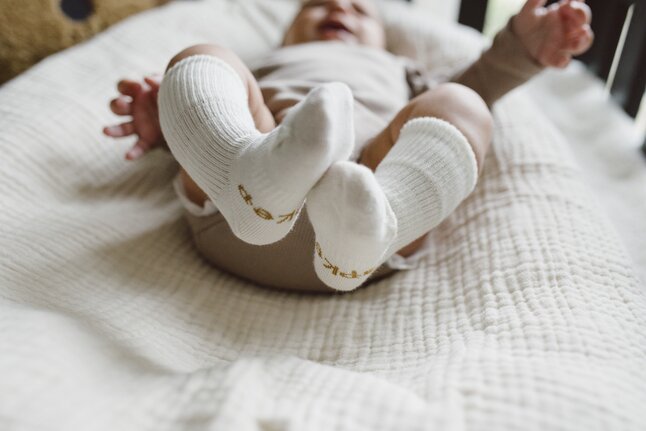 - Met de speciale ingebreide 'blijf-zitten-zones' blijven de sokjes veel beter zitten dan gewone babysokjes. - Deze 'blijf-zitten-zones' bestaan uit 2 elastische bandjes rond de wreef en boven de enkel (zoals bij sportsokken). - Met een platte teennaad die niet irriteert: voor extra comfort. - Uit biokatoen, polyester en elastaan. - Machinewasbaar op 30 °C.