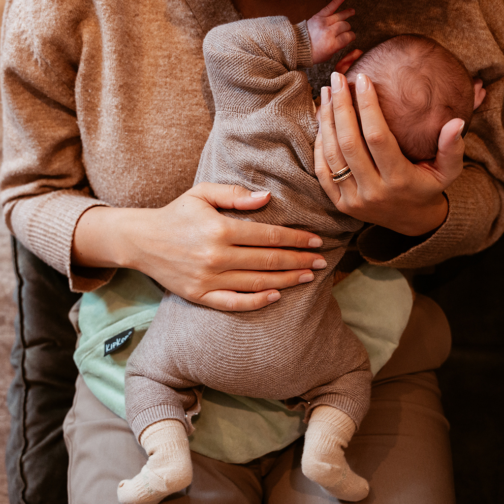 Leg het kussen in de oven (2 minuten op 75°), op de verwarming of in de microgolf (max 1,5 minuten op 600 W) en gebruik het om de borstvoeding te stimuleren of bij pijntjes, de eerste weeën, vermoeidheid...
