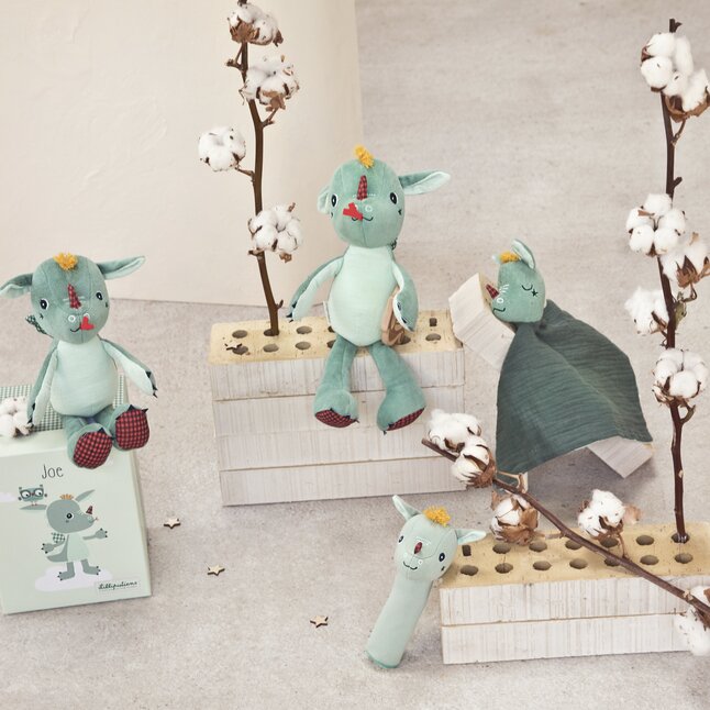 Vanaf 3 maanden. Draakje Joe maakt een grappig geluid elke keer als je baby op hem drukt. Lachen gegarandeerd met deze knijprammelaar van Lilliputiens.