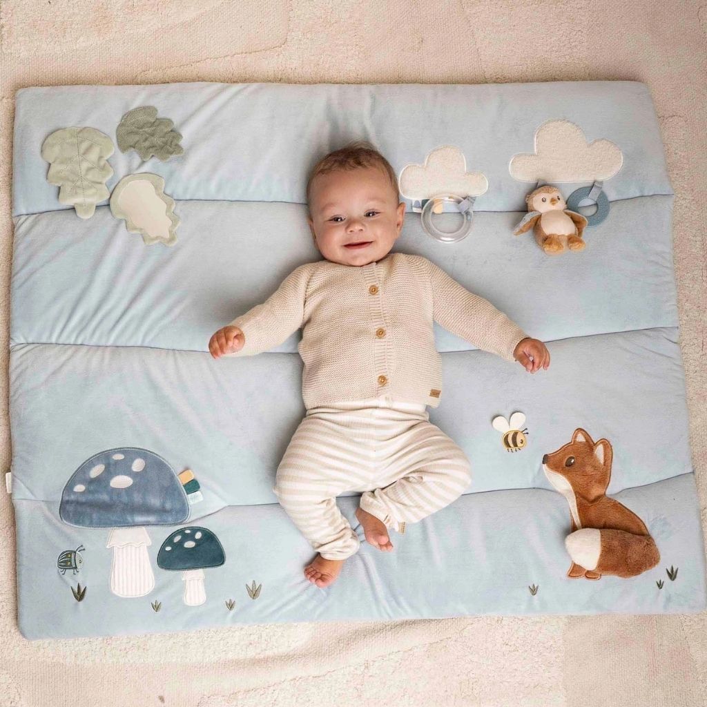 Vanaf de geboorte. Meer dan 8 stimulerende activiteiten om te ontdekken: knisperende blaadjes, spiegeltje, zachte wolken om aan te raken, hangende uil, bijtring, rammelaar met 3 knikkers, schattige vos om te aaien, labels om vast te grijpen. - Stimuleert tummy time: verstevigt de rug- en nekspieren van je baby.- Stimuleert de zintuigen, waaronder tastzin, zicht en gehoor.- Ontwikkelt de fijne motoriek.- Vanaf de geboorte.- L 80 x B 100 cm.- Machinewasbaar op 30 °C.