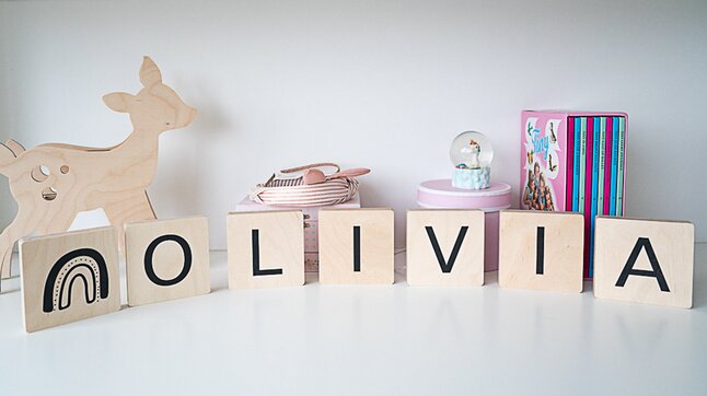 Hang de letters op met dubbelzijdige tape, kleefpads, etc. of geef ze een leuke plaats op de commode of het wandrek.
