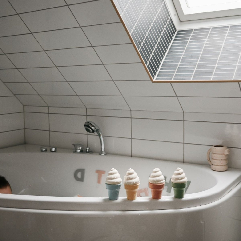 Met deze set van vier ijsjes in betoverende kleuren stimuleer je niet alleen de fantasie, maar ook de ontwikkeling van fijne motoriek en hand-oogcoördinatie. De zachte, kneedbare topjes en hoorntjes zijn ontworpen voor kleine handjes, waardoor ze makkelijk te gebruiken zijn tijdens verschillende activiteiten, zoals rollenspellen in de speelkeuken, baddertijd of zelfs tijdens een dagje aan het strand.