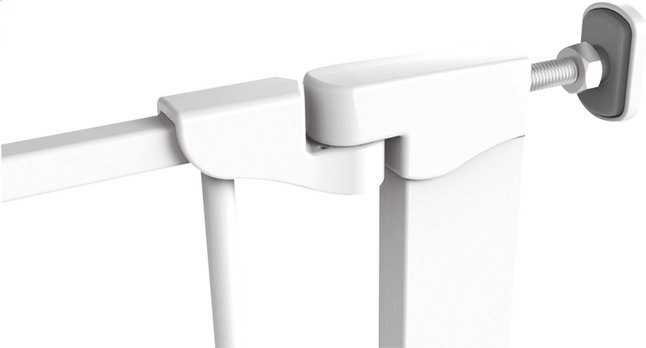 Is de doorgang waarvoor jij het hekje wil gebruiken breder? Met een verlengstuk van 7 cm (apart verkrijgbaar) kan je dit probleem oplossen: je kan maximum 4 verlengstukken gebruiken, waardoor het hekje past in openingen van 110 cm. Er zijn ook verlengstukken van 14 cm en 28 cm.