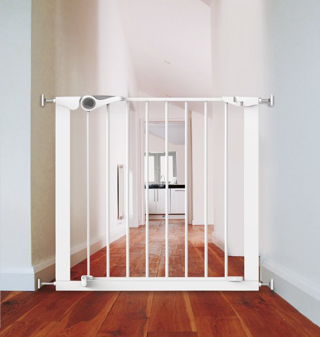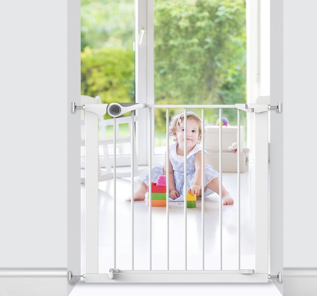 Het deurhekje is geschikt voor doorgangen van 75 tot 82 cm breed en is 73 cm hoog.