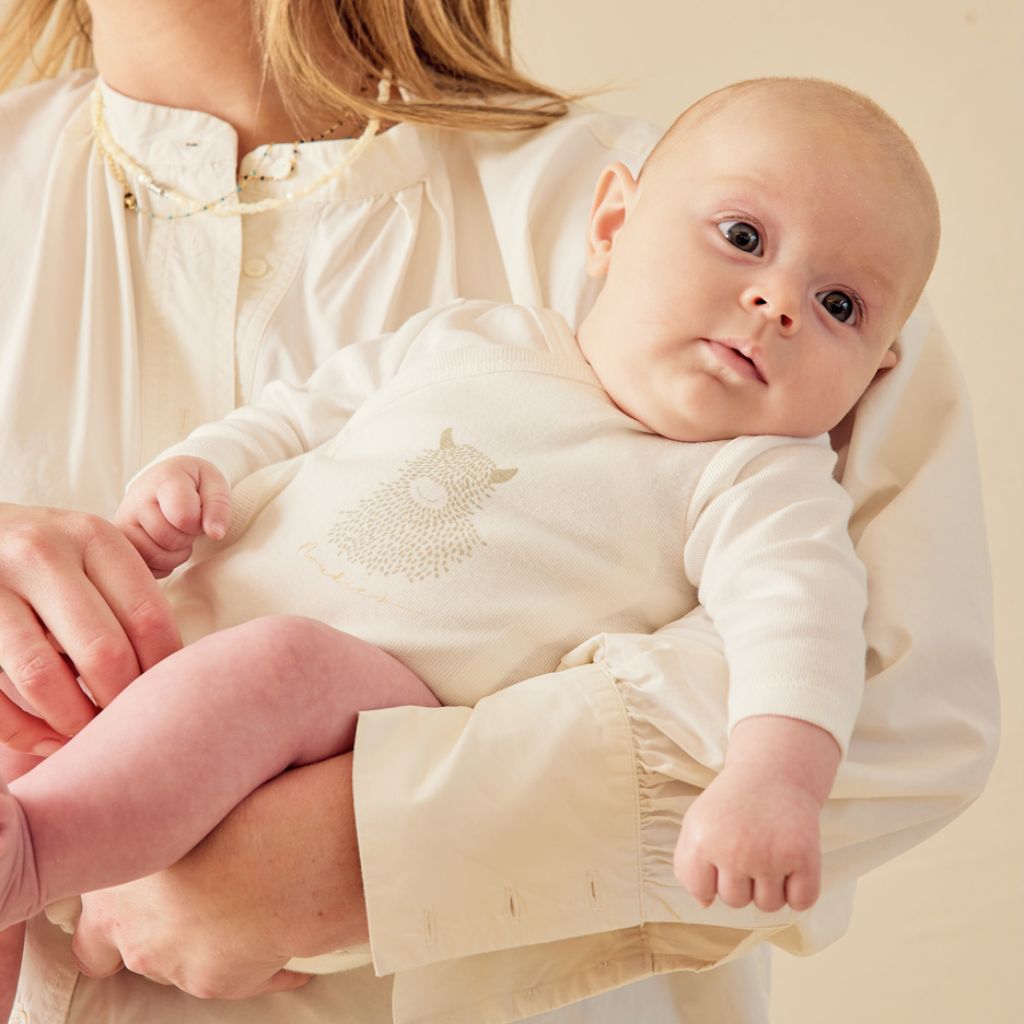 - Twee bodys met lange mouwen en overslag: gemaakt van ultrazachte biologische katoenen jersey, perfect voor de gevoelige huid van pasgeborenen.