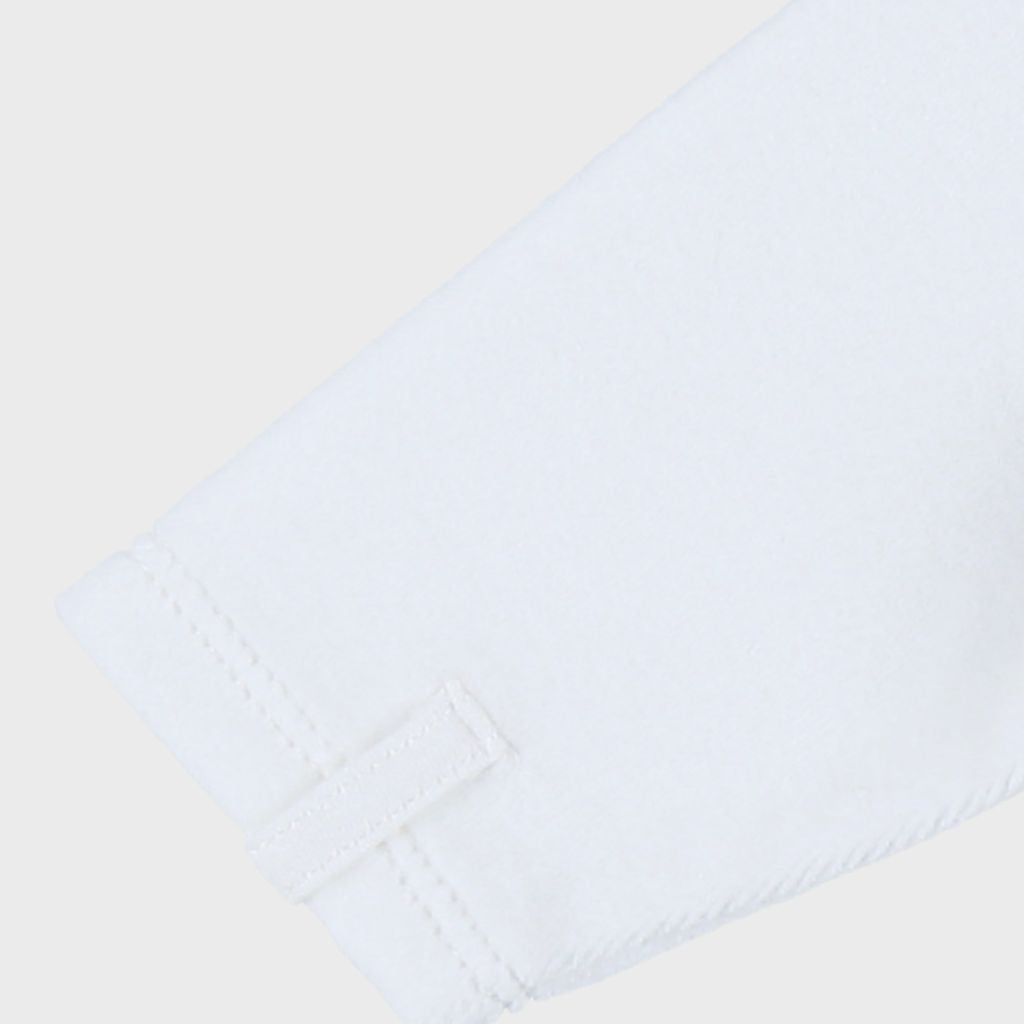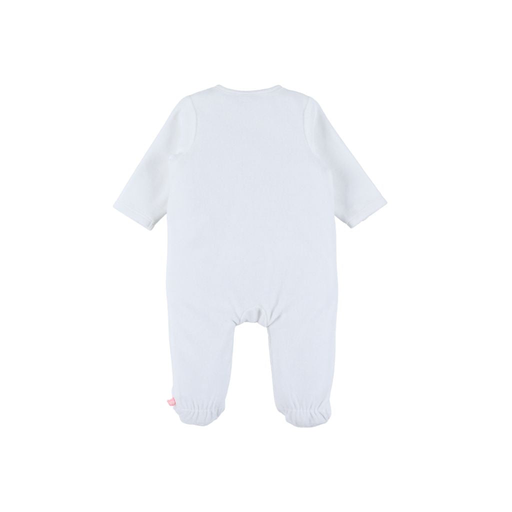 Ontdek de Noukie's pyjama in wit fluweel: zacht, praktisch met een knuffelhouder voor zoete dromen. Perfect voor rustige nachten.