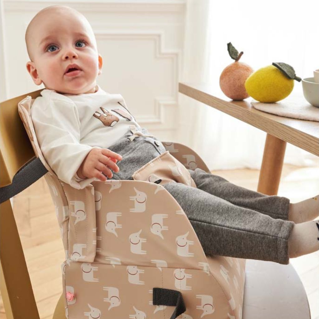 - Veilig: dankzij het harnas en de riemen kan je de stoelverhoger op bijna alle stoelen bevestigen.