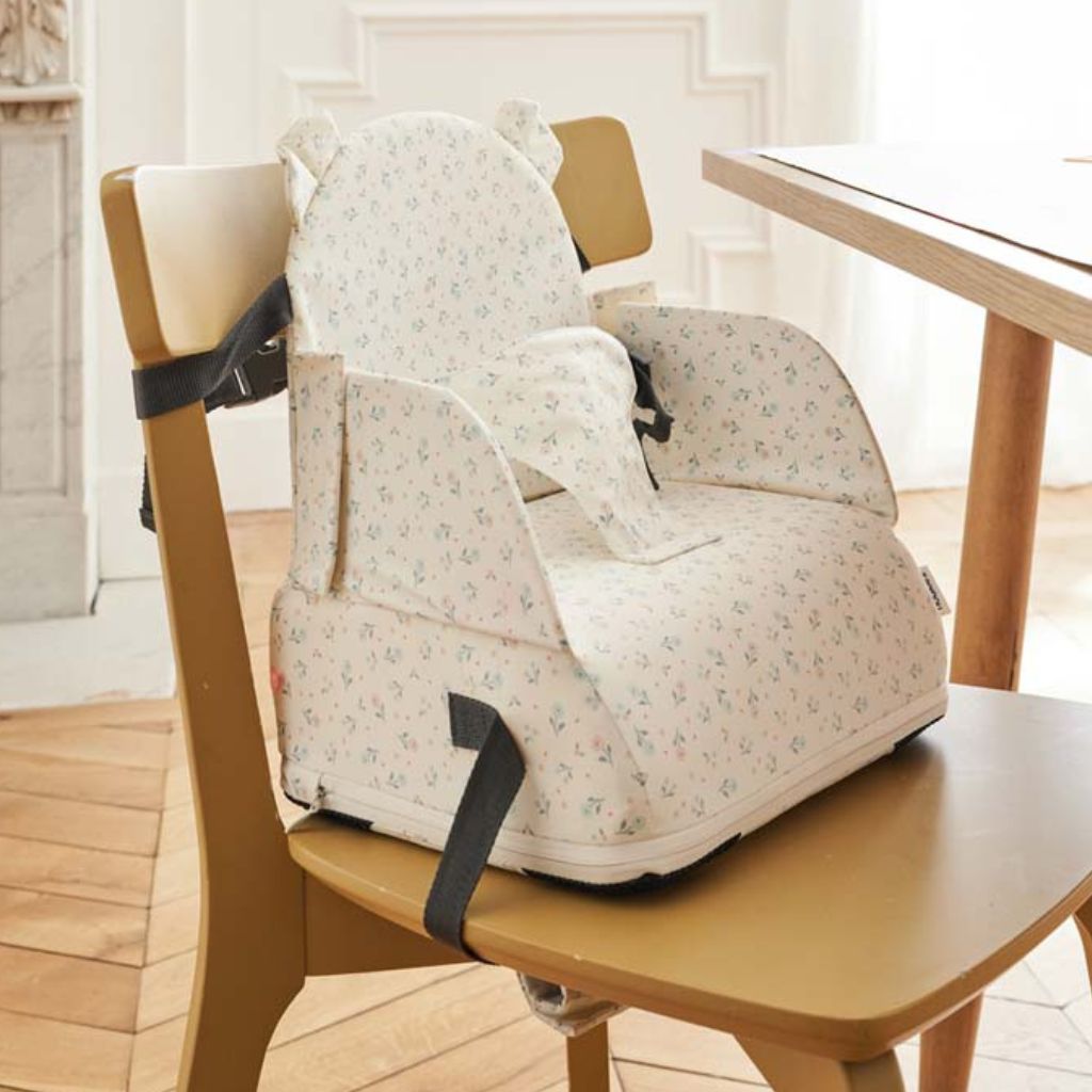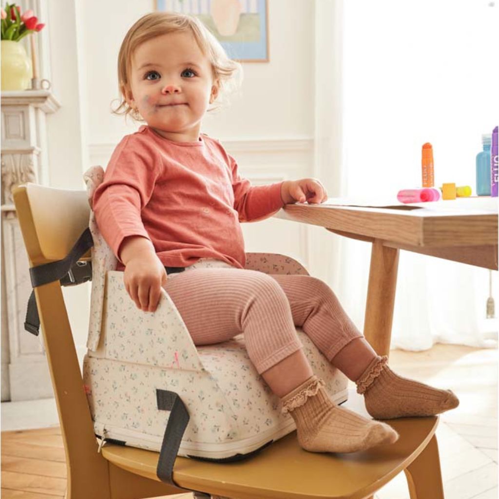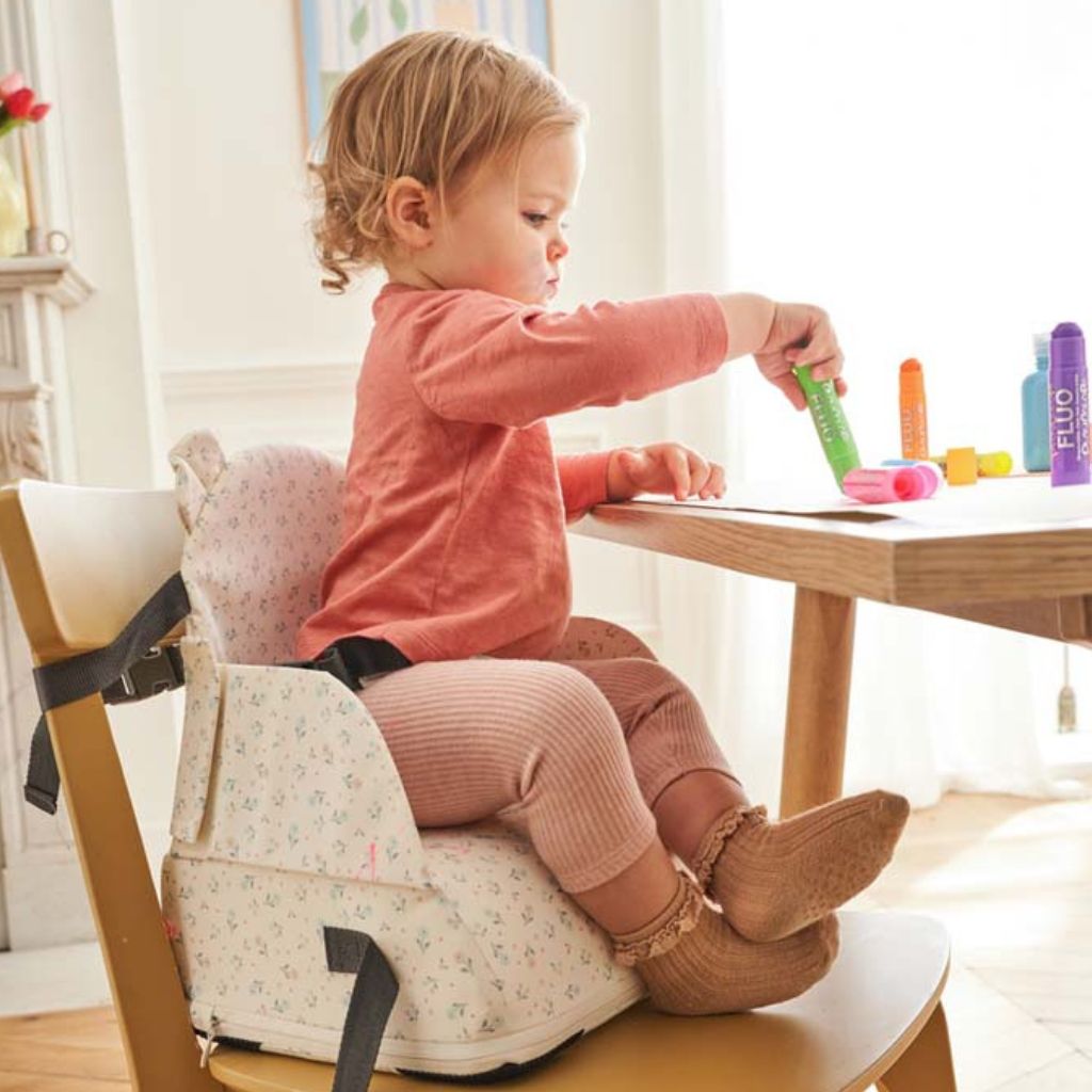 Om te bouwen tot draagtas.- Je kindje zit altijd op de juiste hoogte.- Veilig: dankzij het harnas en de riemen kan je de stoelverhoger op bijna alle stoelen bevestigen.