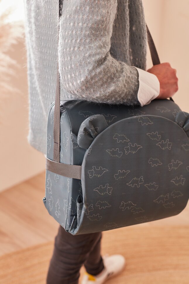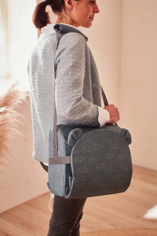 - Plooibaar, licht en makkelijk mee te nemen dankzij de schouderriem. Handig op reis of bij vrienden, bijvoorbeeld.