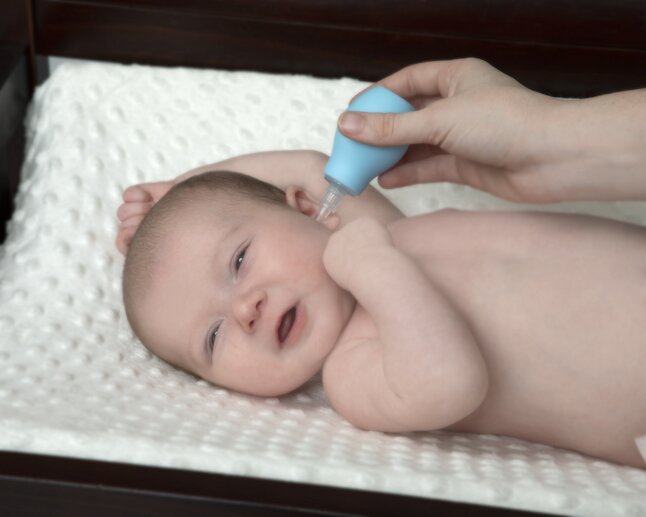 Makkelijk verwisselbare dopjes. De neus- en oorreiniger heeft twee functies: verlicht je baby's verstopte neus en verwijdert bovendien overtollig oorsmeer uit het buitenste oorkanaal.