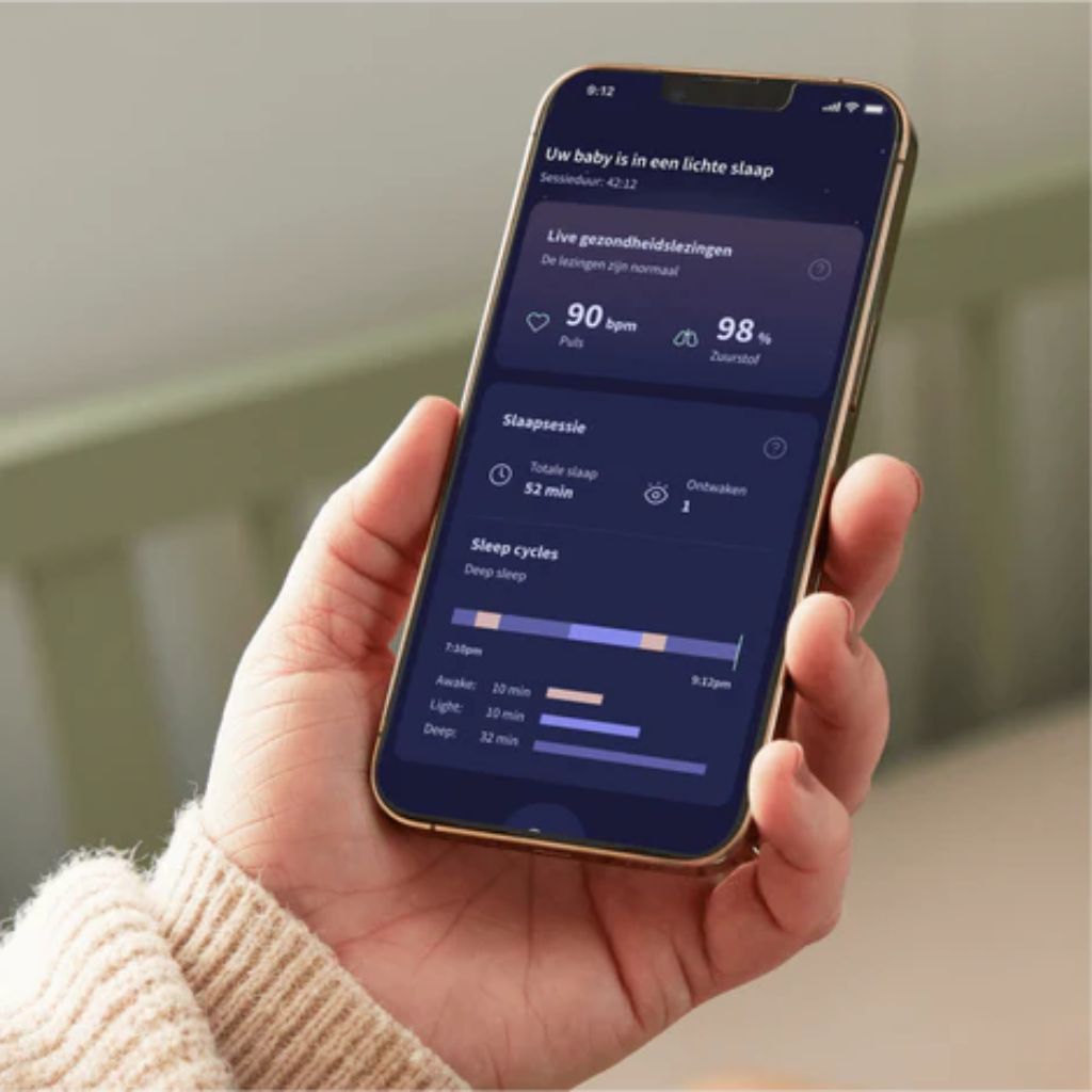 - Je kan in real time & overal je baby's hartslag, zuurstofgehalte, slaappatroon... zien in de Owlet Dream-app.