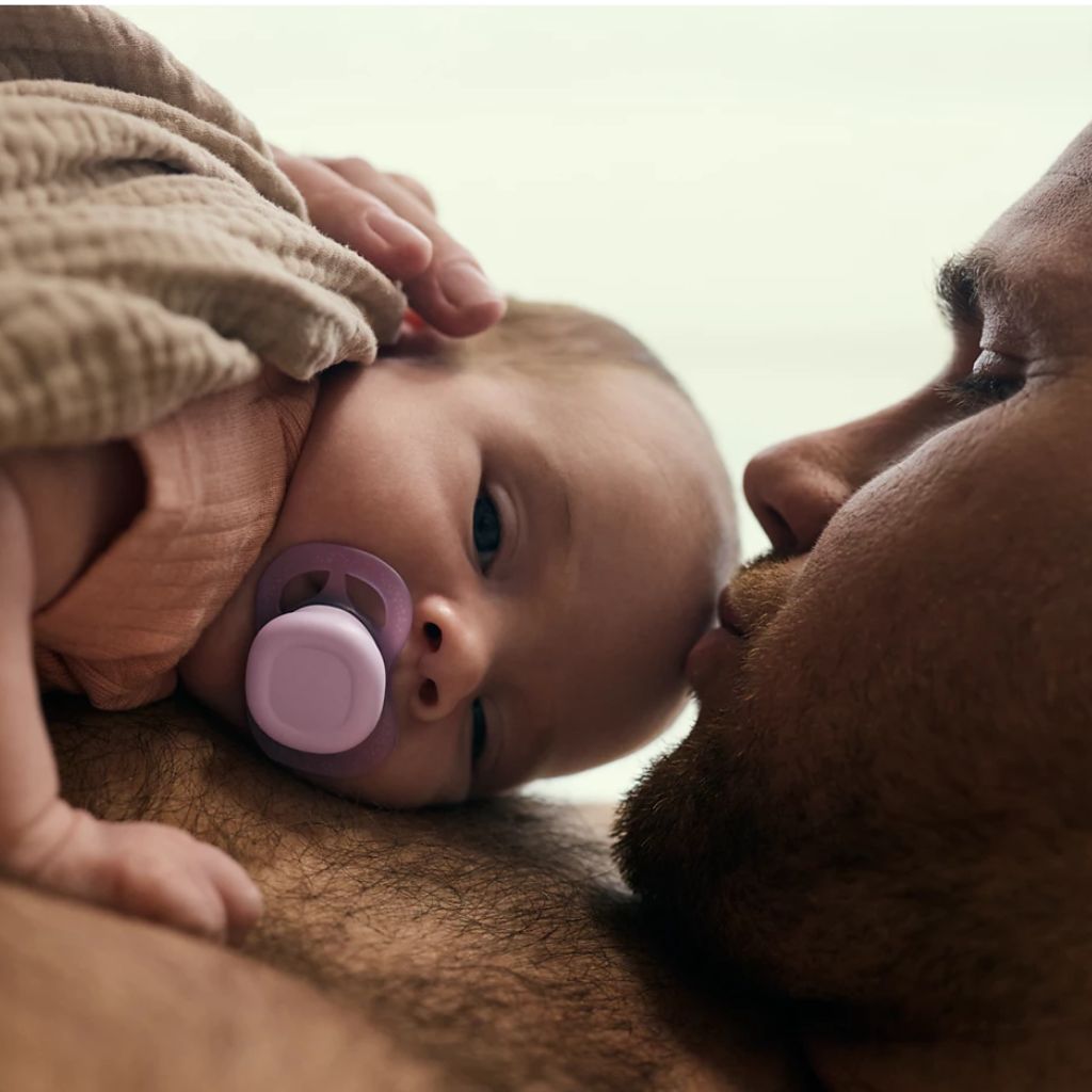 Set van 2 fopspenen.Deze 2 fopspenen hebben een zachte siliconenspeen met textuur die je kleintje comfort biedt. De speen is symmetrisch en respecteert de natuurlijke vorm van het gehemelte, de tanden en het tandvlees van je baby, zodat de mondontwikkeling wordt gerespecteerd.De speen is gemaakt uit voedselveilige siliconen, 100% vrij van BPA, BPS, PVC en polycyclische aromatische koolwaterstoffen.Je kunt de fopspeen steriliseren en opbergen in het praktische doosje.