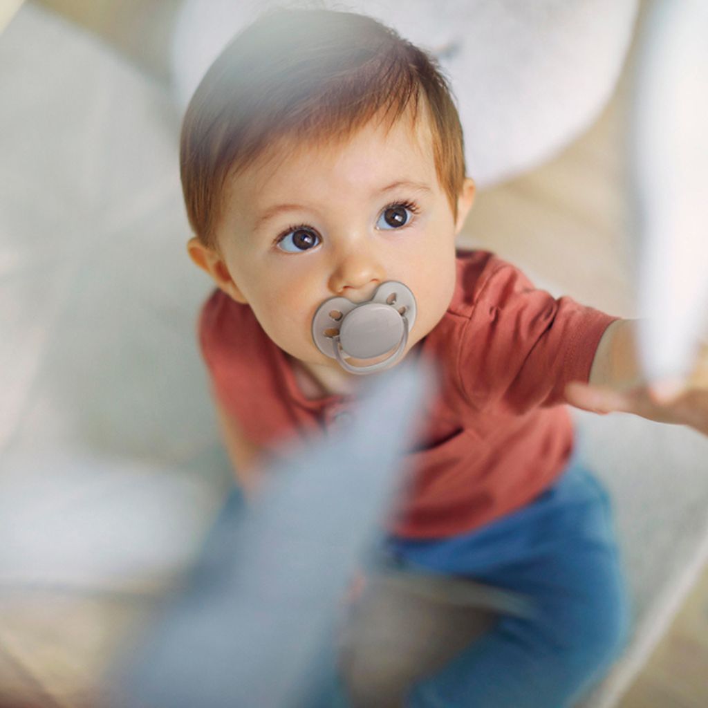 De fopspeen heeft ook een zachte siliconenspeen met textuur die je kleintje comfort biedt. De speen is symmetrisch en respecteert de natuurlijke vorm van het gehemelte, de tanden en het tandvlees van je baby, zodat de mondontwikkeling wordt gerespecteerd.