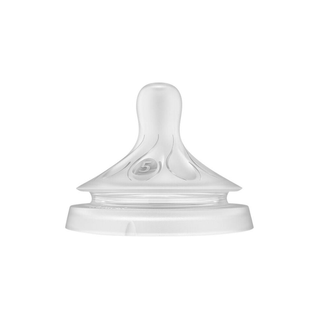 De brede, zachte en flexibele speen imiteert de moederborst, zo kan je je baby op een natuurlijke manier voeden.