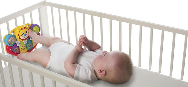 Het activiteitenspeeltje Jerry's Class Lion Activity Kick Toy van Playgro heeft 7 leerrijke activiteiten en speelt 20 liedjes voor je kindje. De lichtjes knipperen op het ritme van de muziek.