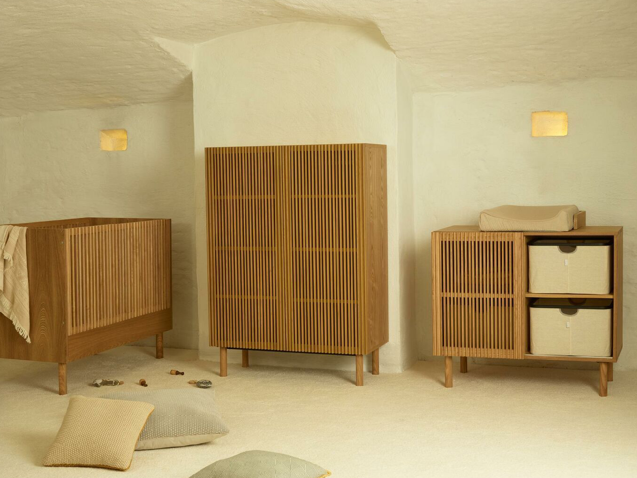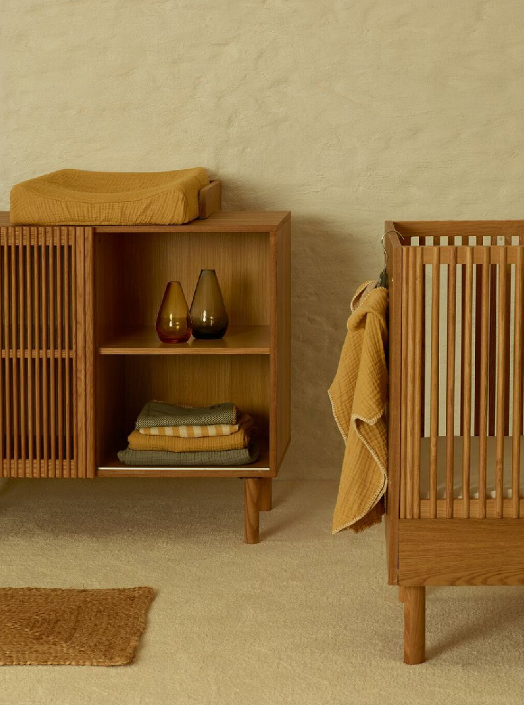 - Omvormbaar tot bedbank (met matrasmaat 120 x 60 cm, geschikt tot ongeveer 4 jaar).