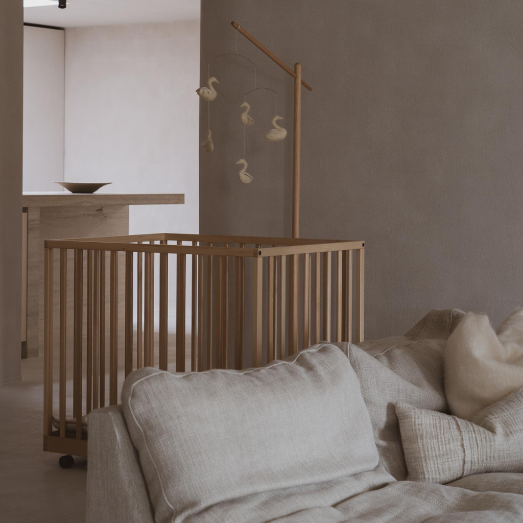 Deze Mori Naturel park van Quax is tijdloos, veilig en comfortabel voor je baby. Duurzaam en elegant voor in huis.