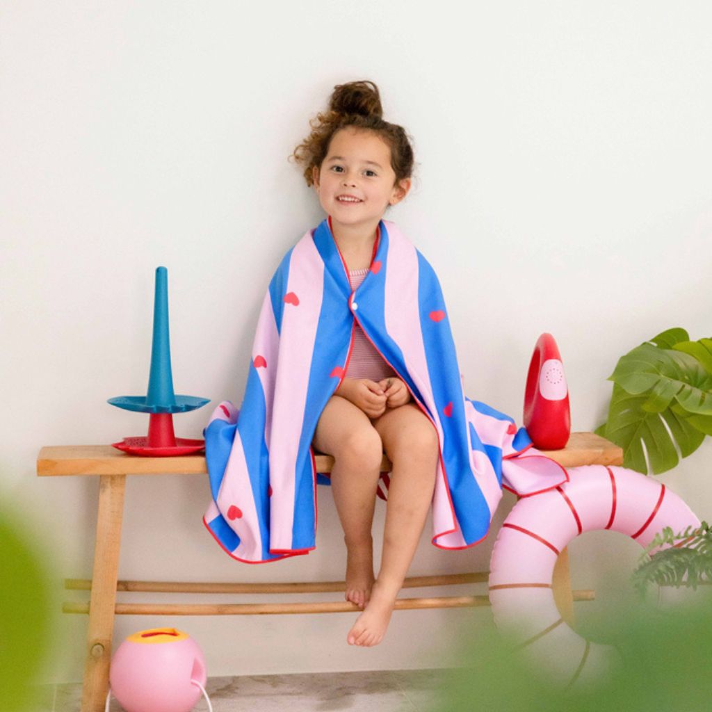 Met drukknoopje om er een cape van te maken!- Mooie speelhanddoek met aan de ene kant een vuurtoren en aan de andere kant een streepjesmotief.- Gemaakt van microvezels: droogt snel & is compact op te vouwen.