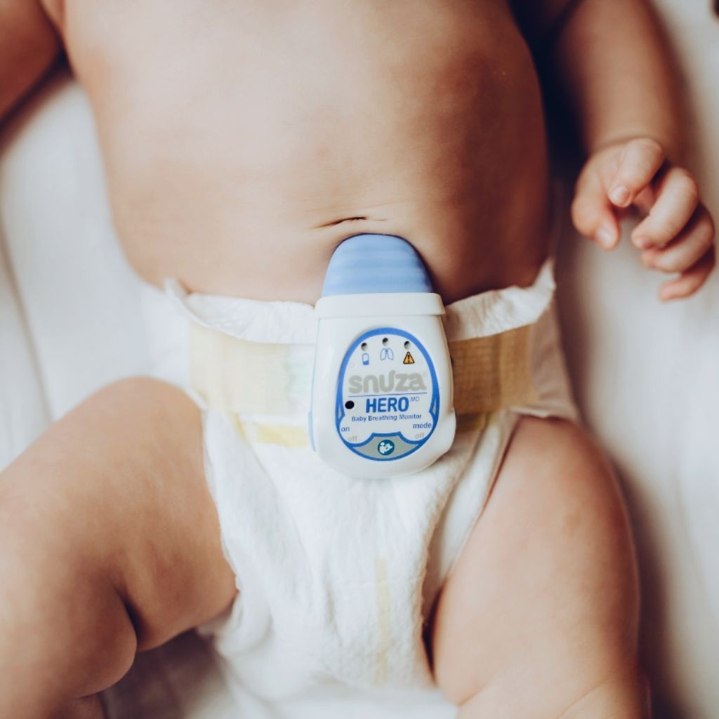 De Snuza Hero MD is een draagbaar toestelletje dat je vastklikt aan de luier van je kindje voor het slapengaan.