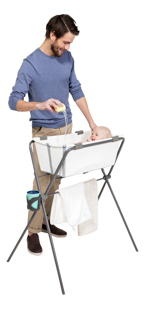 - Een lichtgewicht, draagbaar babybadje dat opvouwbaar is.
