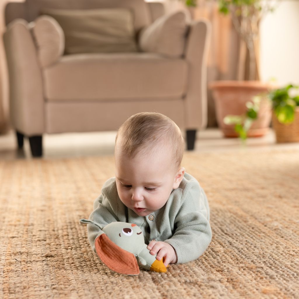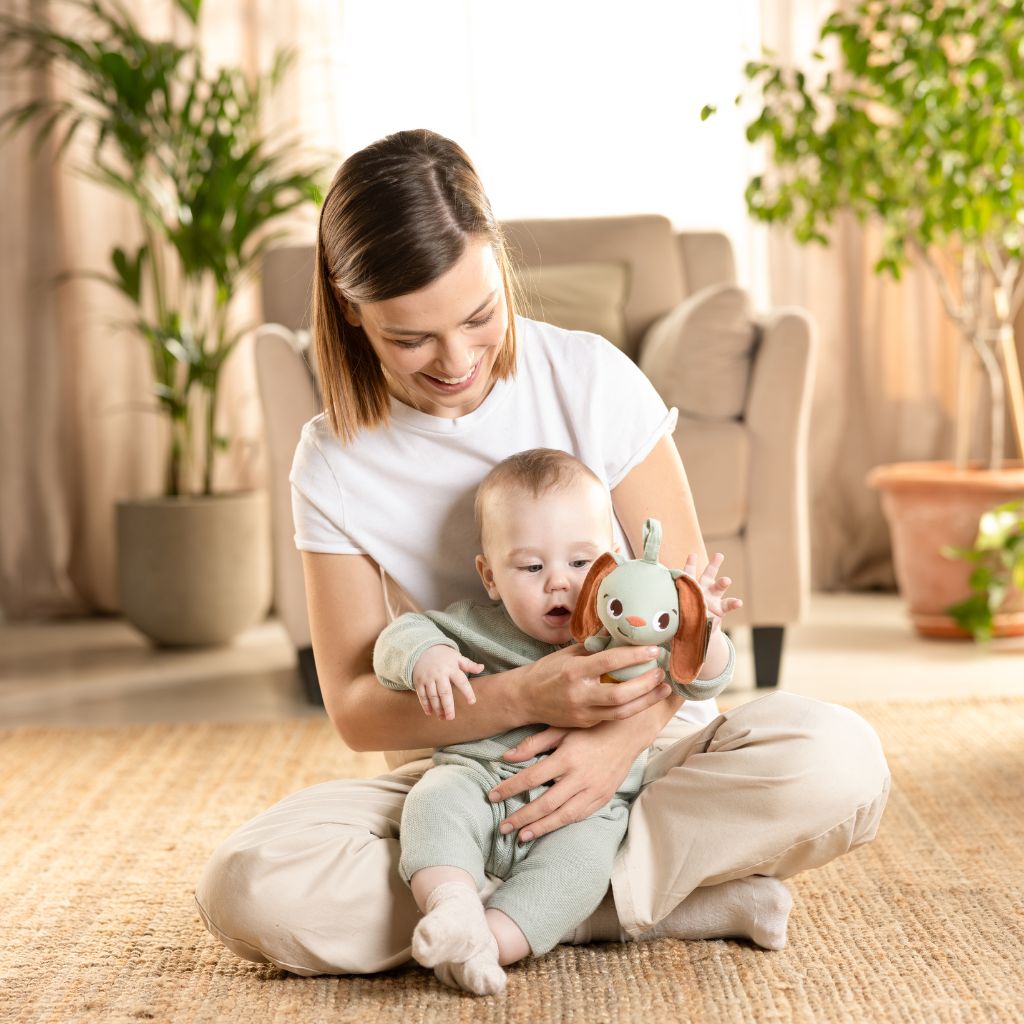 Oeko-Tex gecertificeerd.- De pootjes & oortjes van het konijn kan je gemakkelijk bewegen: prikkelt de zintuigen en stimuleert de fijne motoriek.- Kan ook gebruikt worden als rammelaar.